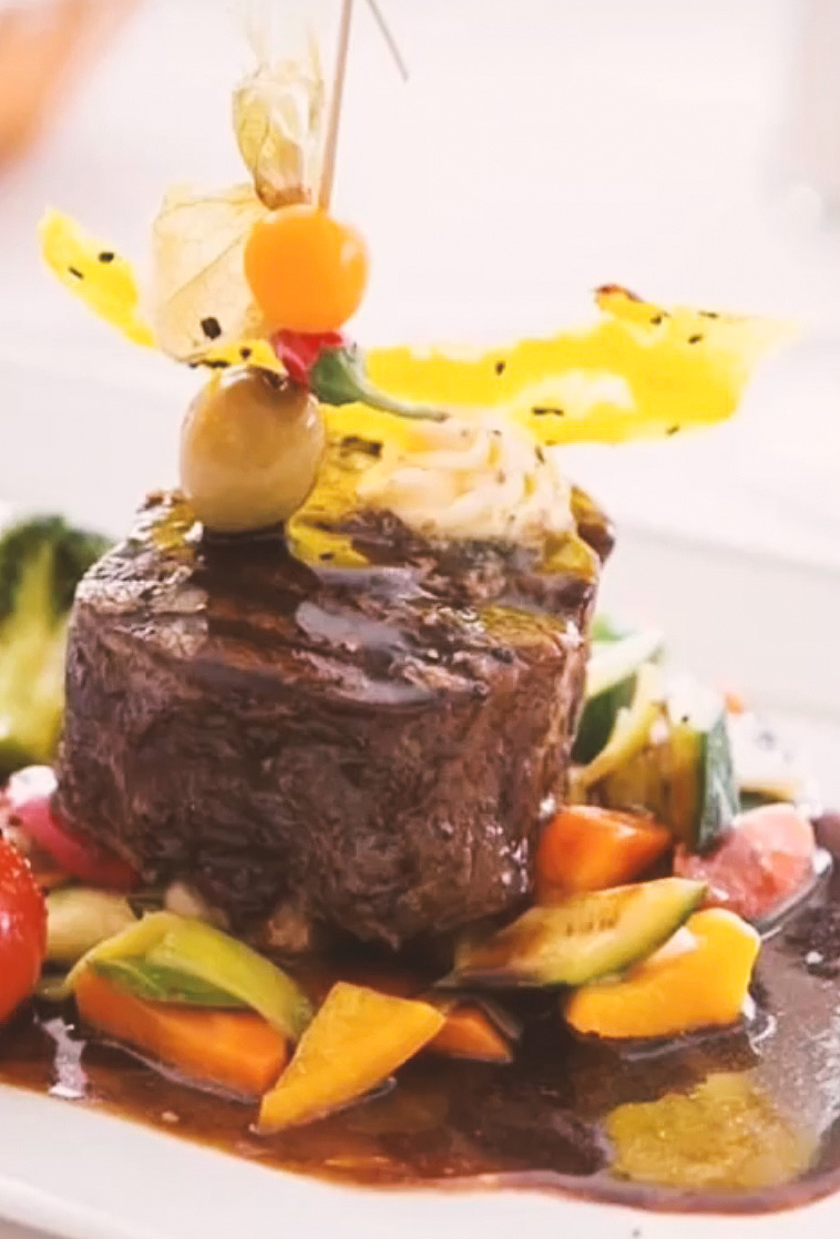 Argentinisches Premium Rinderfilet ca. 250g auf Gemüse, mit Riesengarnelen